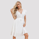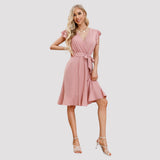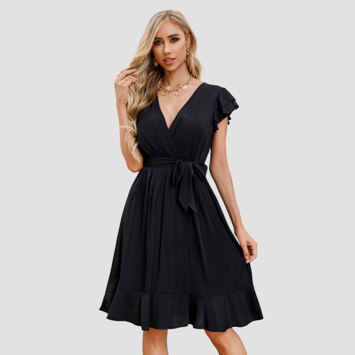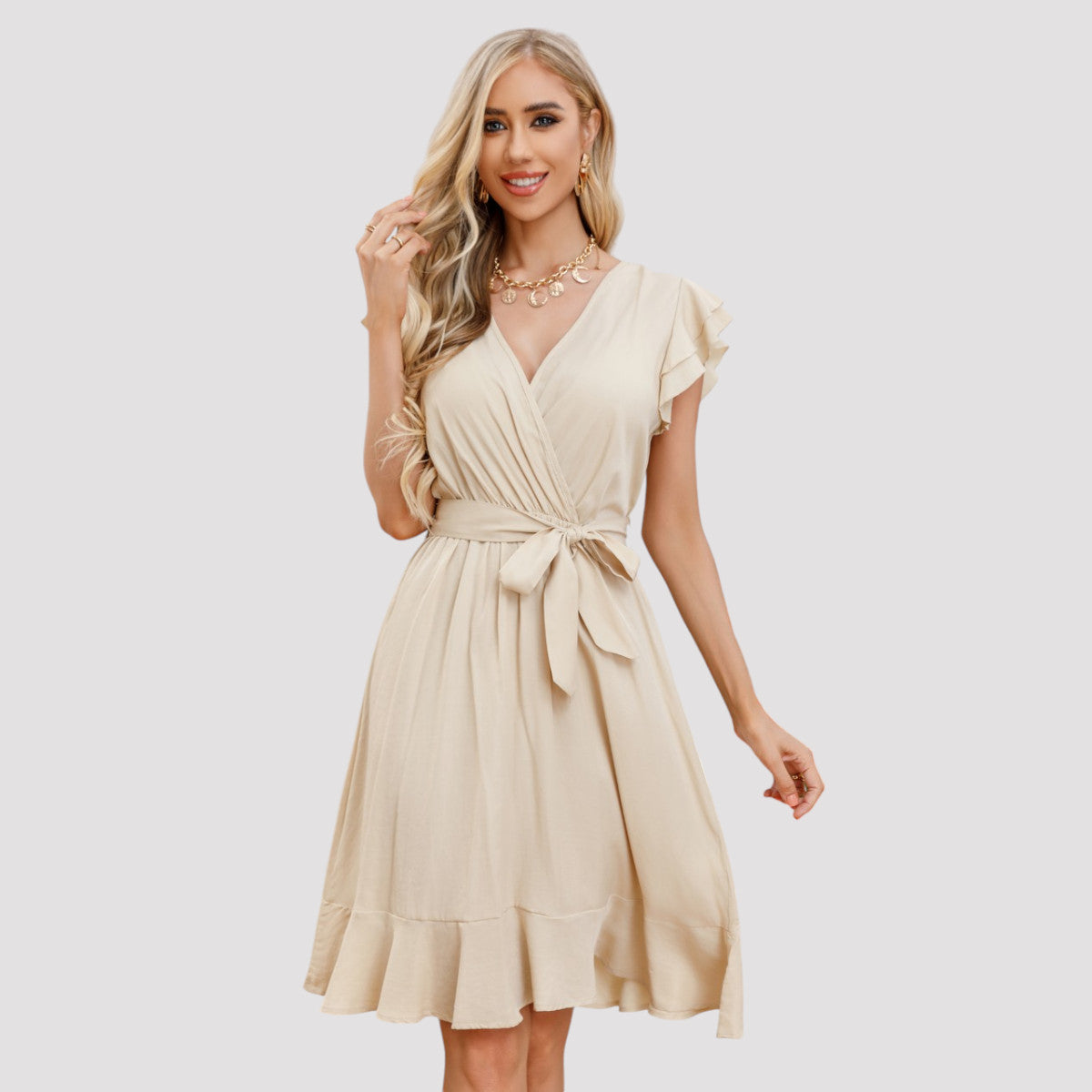 Vestido Corto Linda  es la elección perfecta si necesitas comodidad y estilo. Su tela suave y que no acalora, junto con un corte semi acampanado, escote v , su largo perfecto lo convierte en una buena opción para cualquier ocasión.